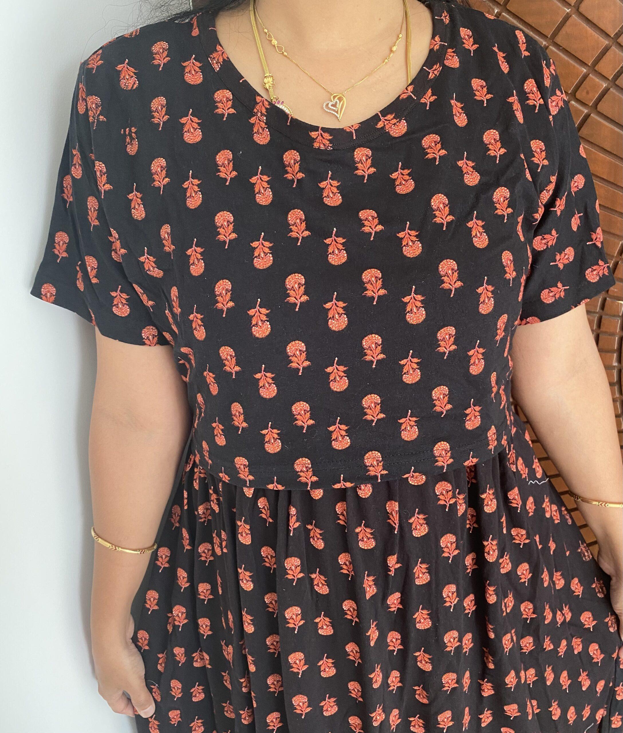 Black with red floral pattern calf length-47inches