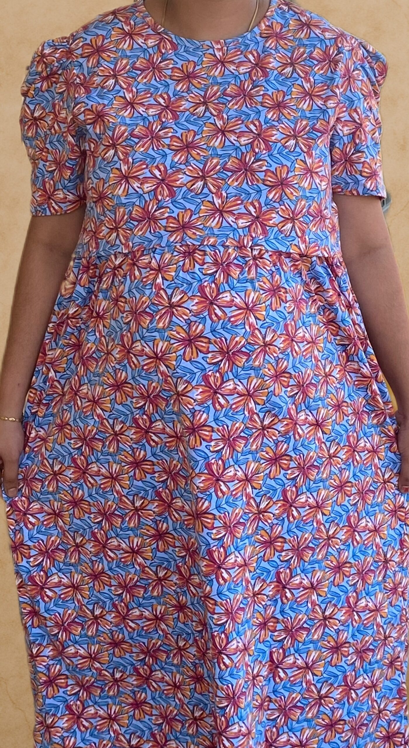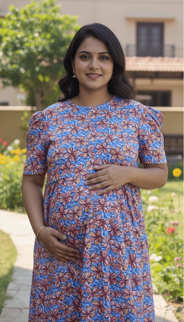 Blue multi floral pattern maternity maxi calf length-47 inches