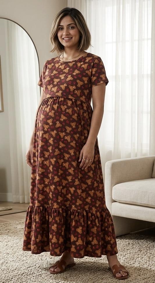 Brown with teddy pattern bottom frill (49-height)