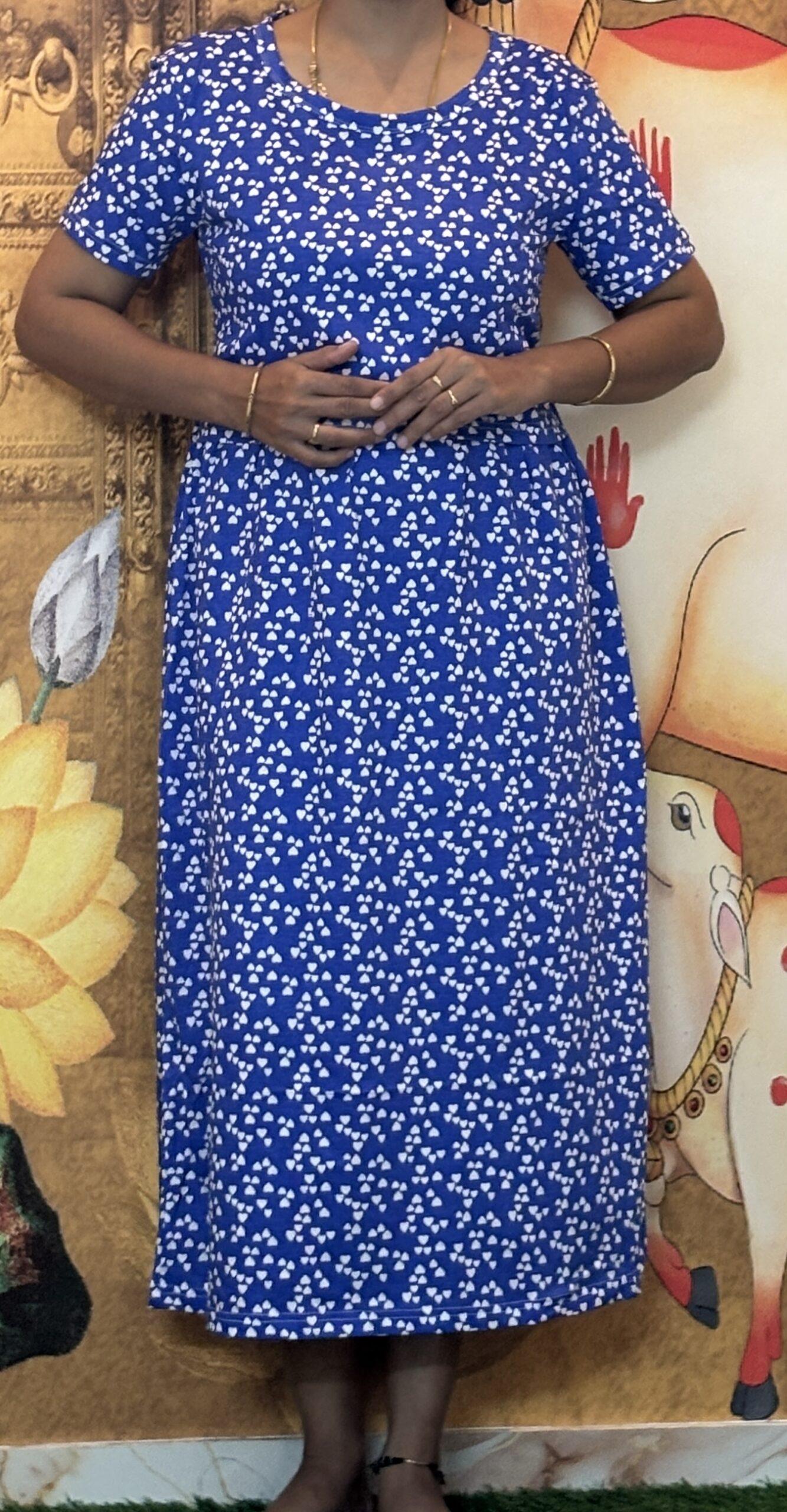 Dark Blue With White Heart pattern maternity maxi calf length-47 inches