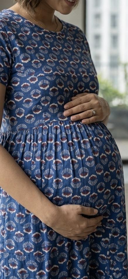 Dark blue with whitefloral zipless maternity with bottom frill (48-height)