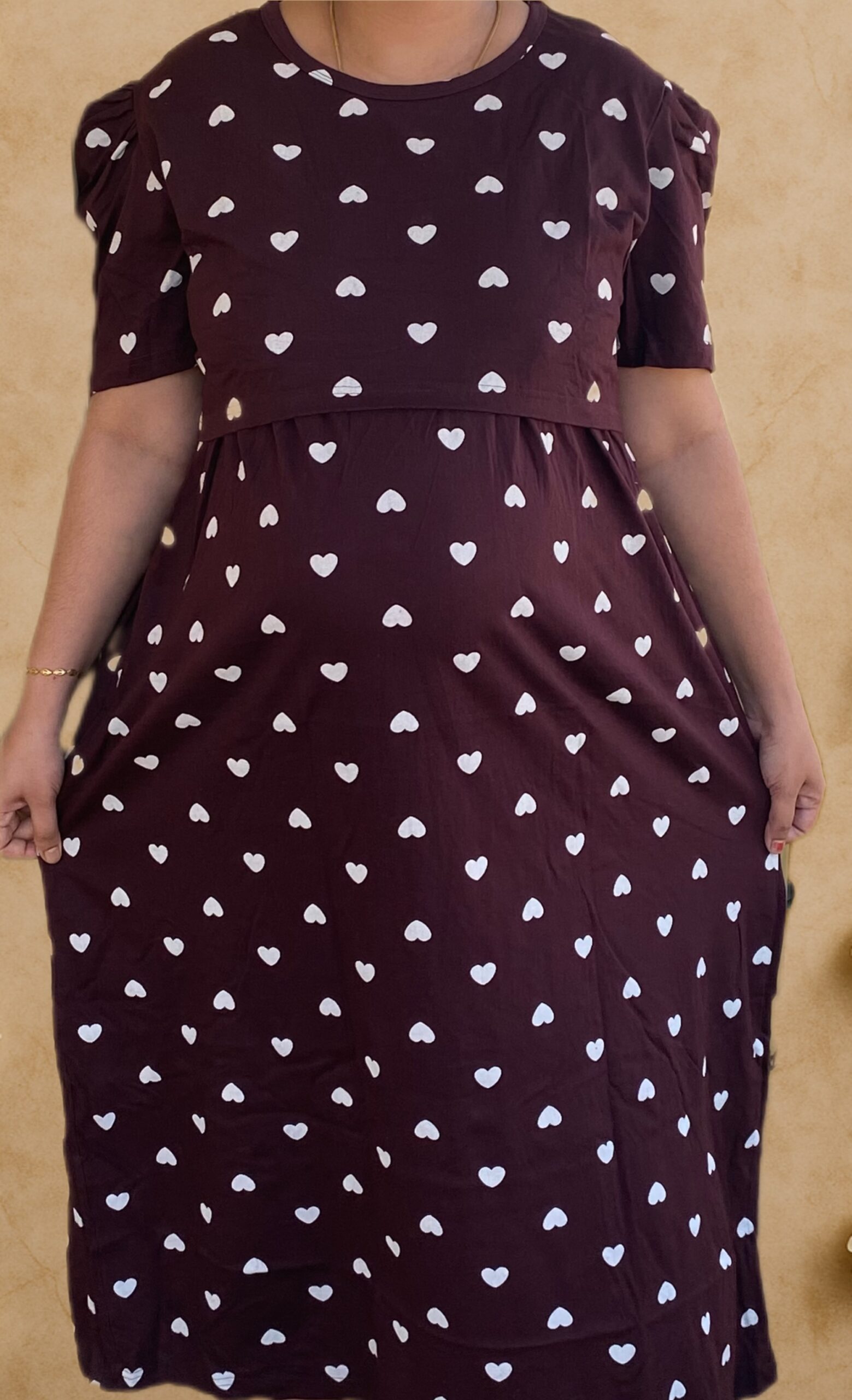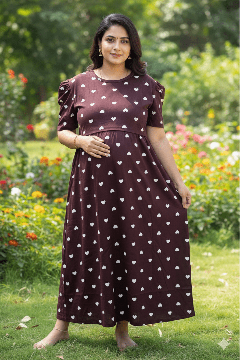 Dark Brown With White Heart maternity maxi full length-51inches
