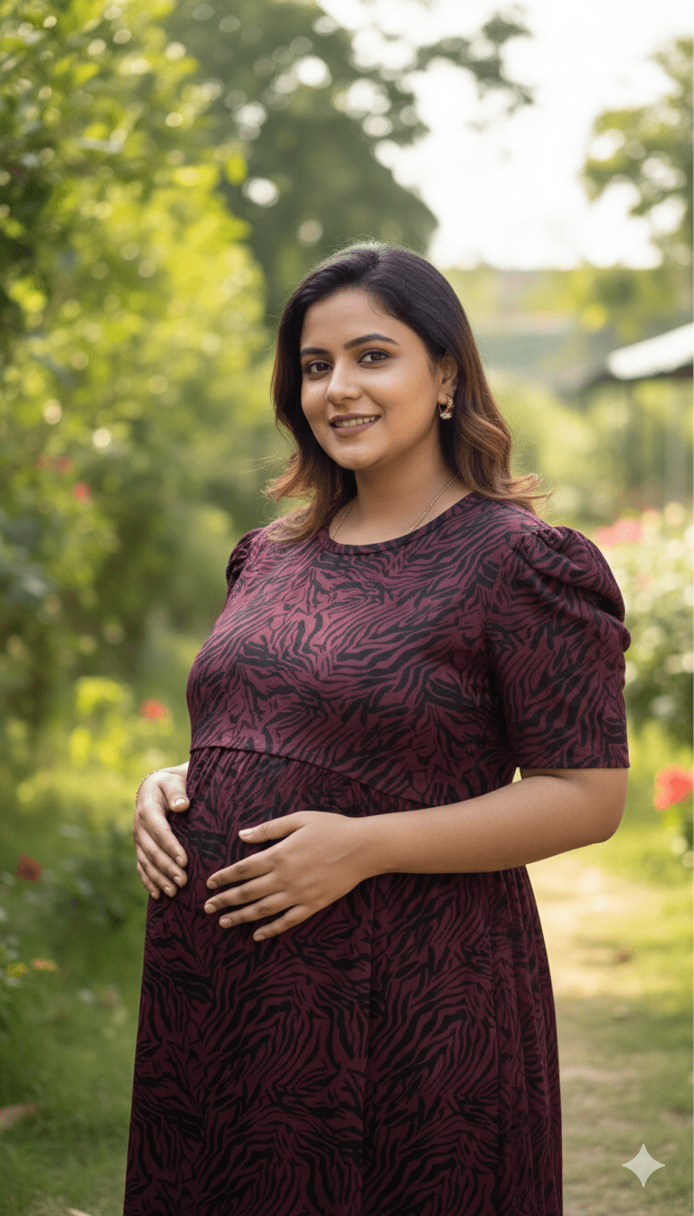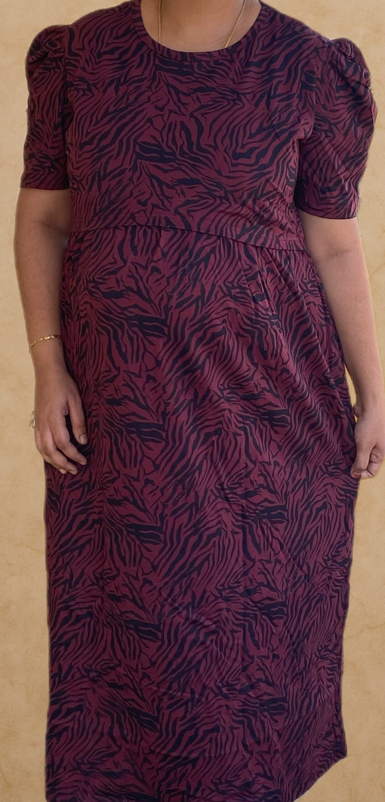 Maroon With Black Zebra Pattern maternity maxi full length-51inches