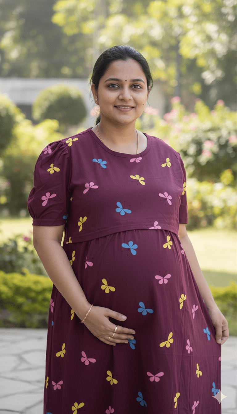 Maroon With Butterfly Pattern maternity maxi full length-51inches