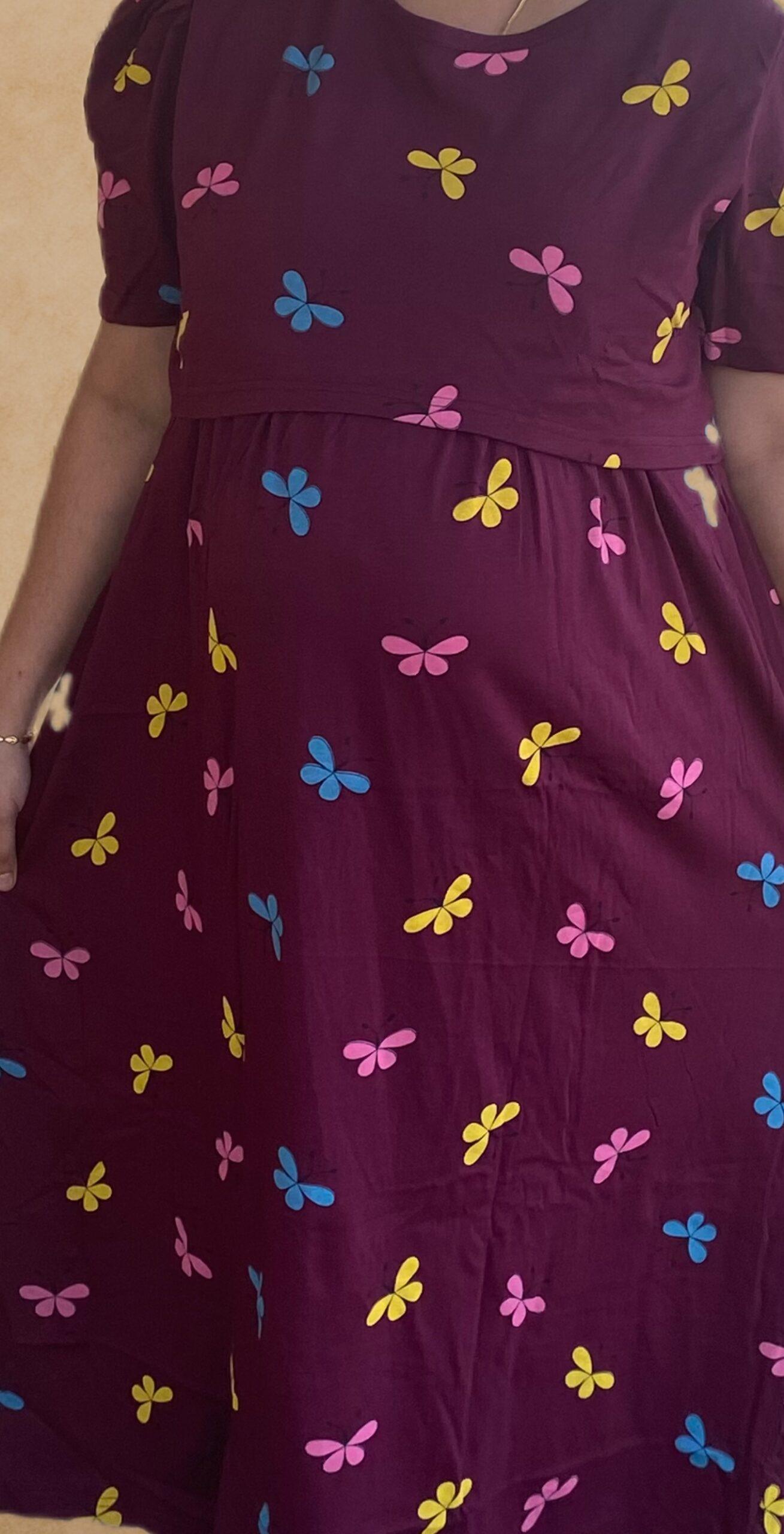 Be the first to review “Maroon With Butterfly Pattern maternity maxi full length-51inches”