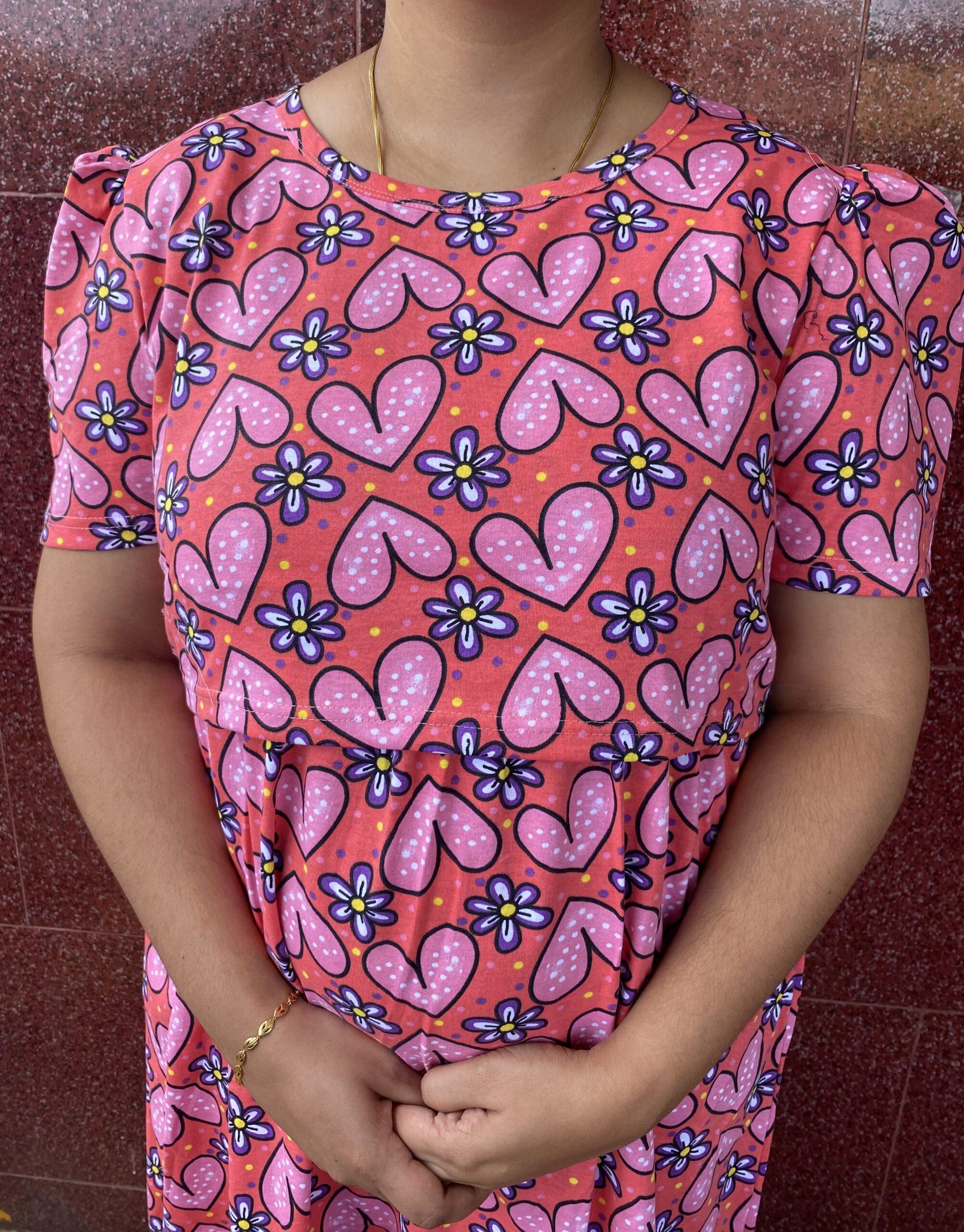 Pink with Heart and Floral pattern maternity maxi calf length-47inches