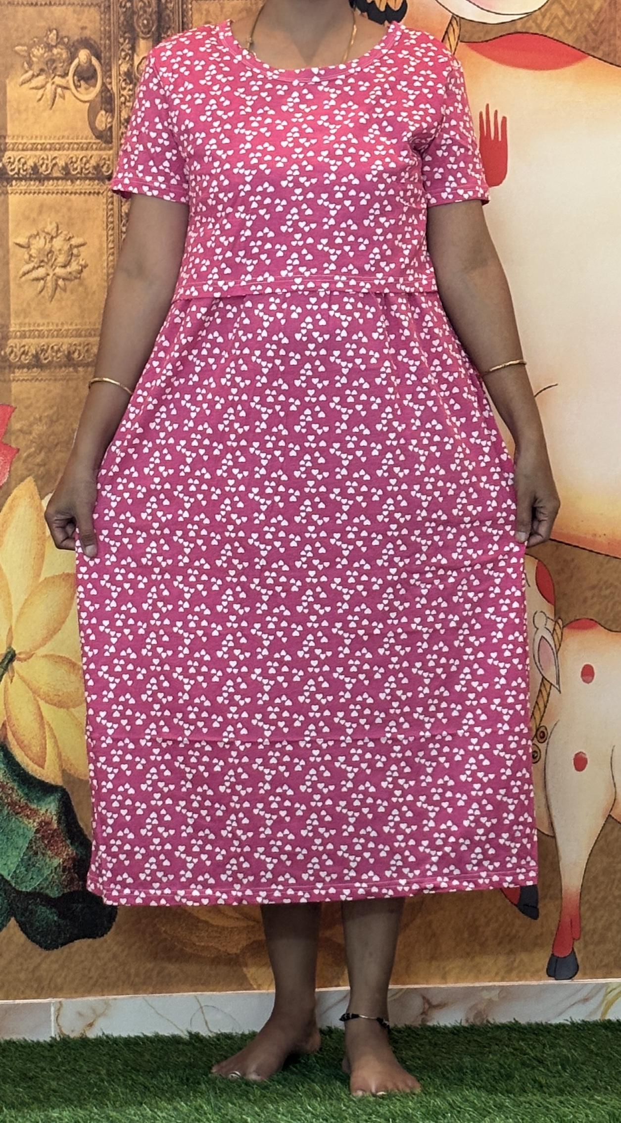 Pink With White Heart pattern maternity maxi calf length-47 inches