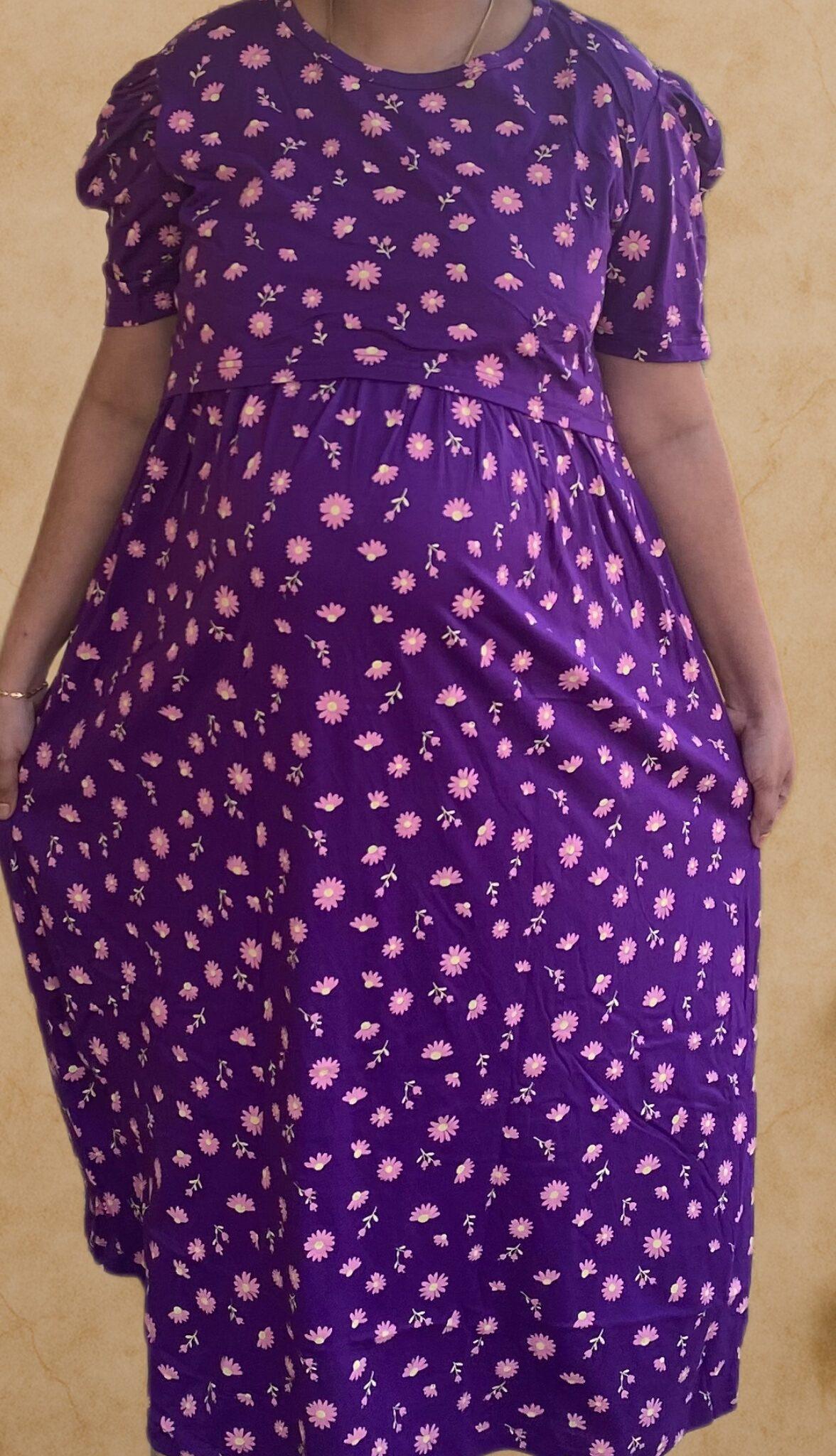 Purple Dress With Pink Floral Pattern maternity maxi full length-51inches