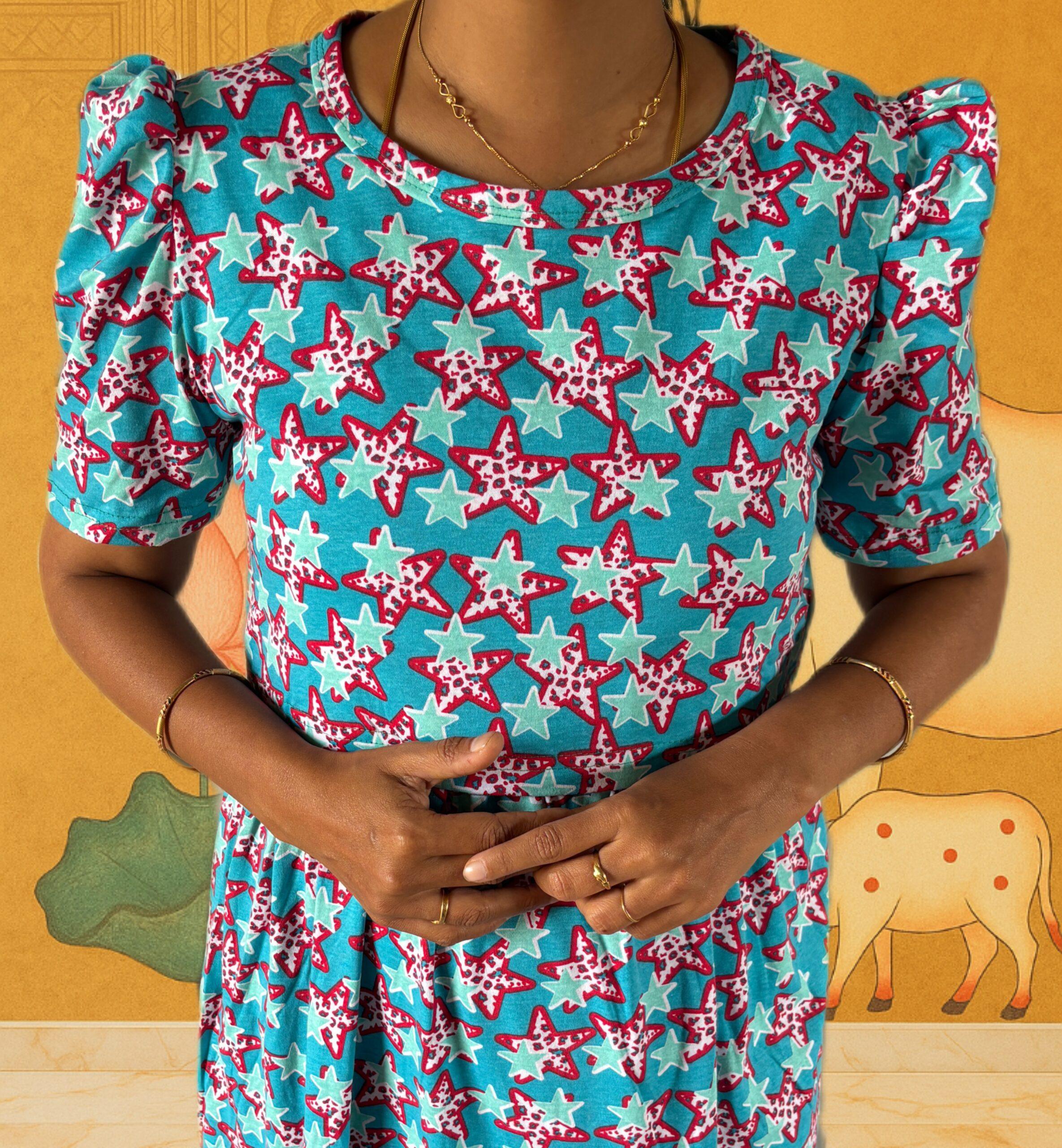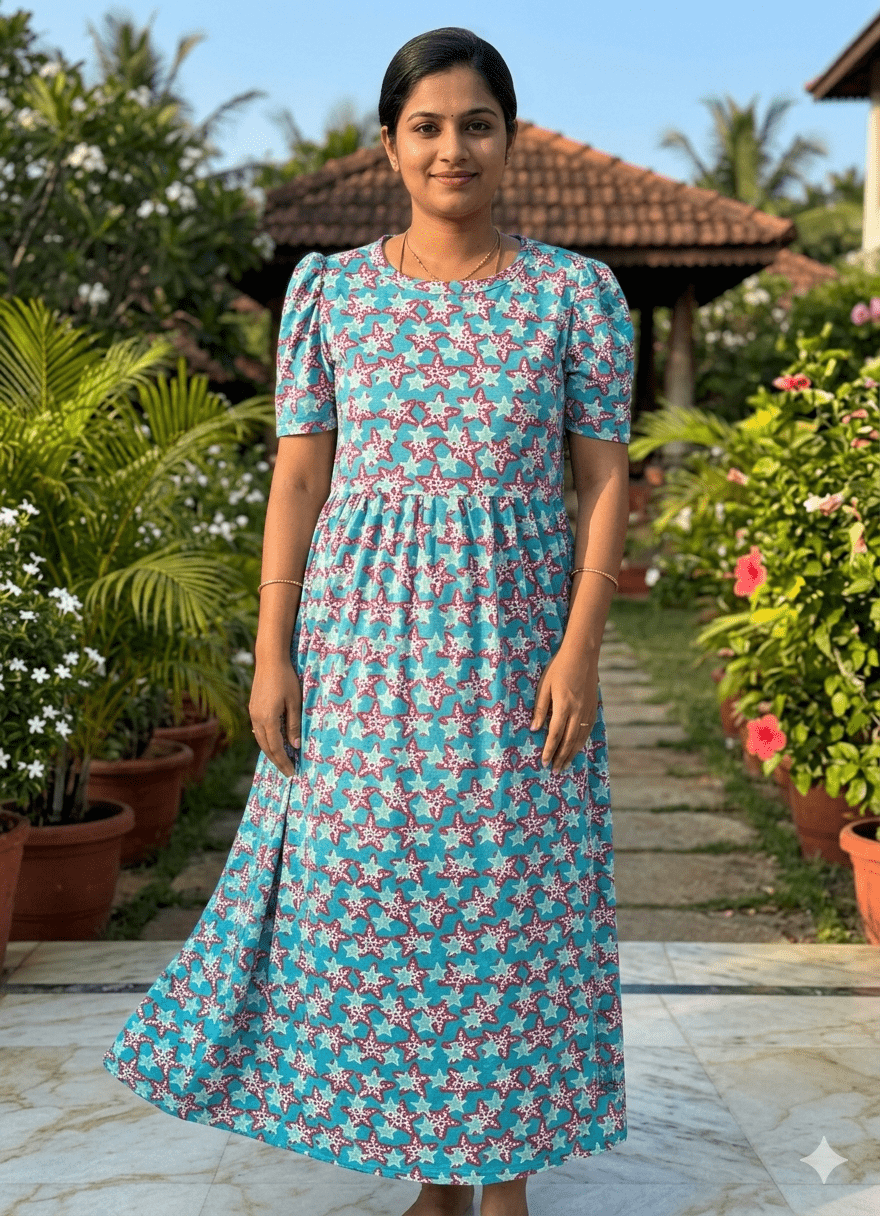 Teal Blue with star pattern maternity maxi full length-50inches