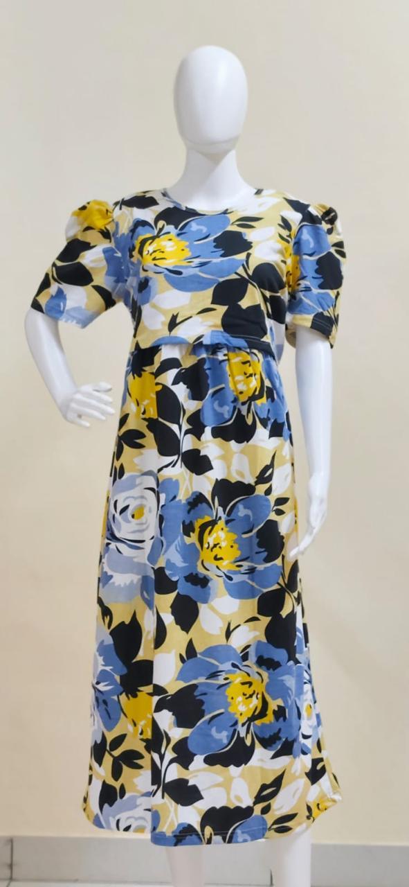 Dark blue with cherry pattern maternity maxi full length-50inches